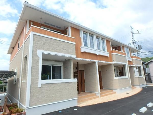 この物件の特徴! バストイレ別 / キッチンに窓 / 全居室フローリング / シューズボックス / 専用ゴミ置場 / ガスコンロ / 駅徒歩10分以内 / 全居室6畳以上 / 室内洗濯機置き場 / ファミリー向け 2階のオシャレな外観のハイツ!